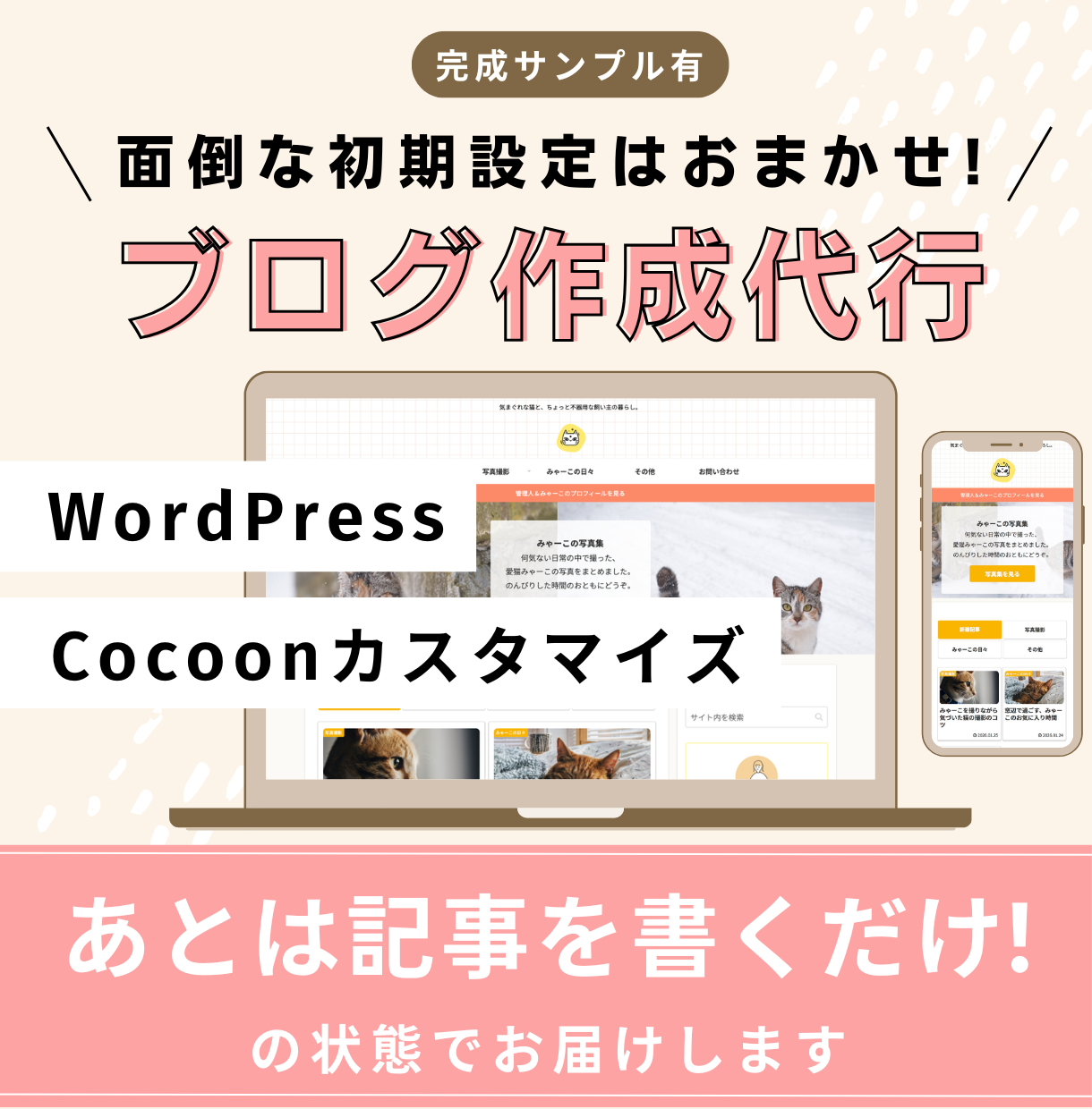 面倒な初期セットアップは全てお任せ!CocoonでWordPressブログの作成代行をいたします。