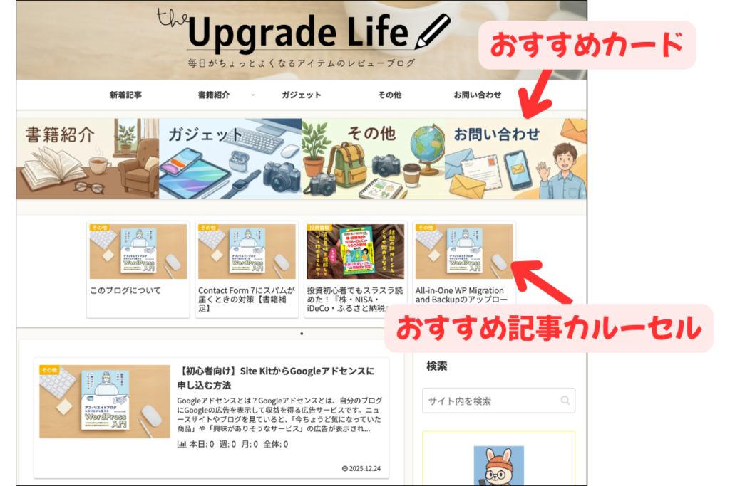 目立たせたい記事やカテゴリがある場合は、ヘッダー下に表示できる